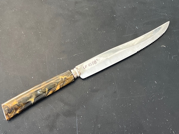 Knife Brown Swirled Bakelite Handle - Serrated Blade