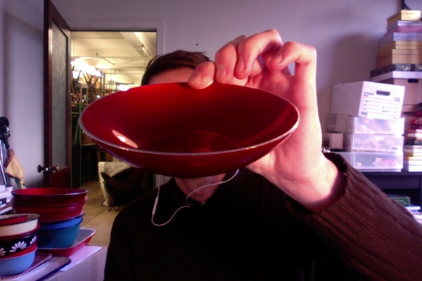 Red Enamel Shallow Bowl s. Silver Rim