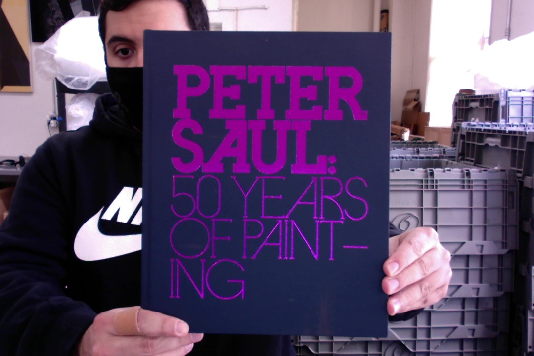 Peter Saul: 50 Years of painting Black book w/shiny purple font