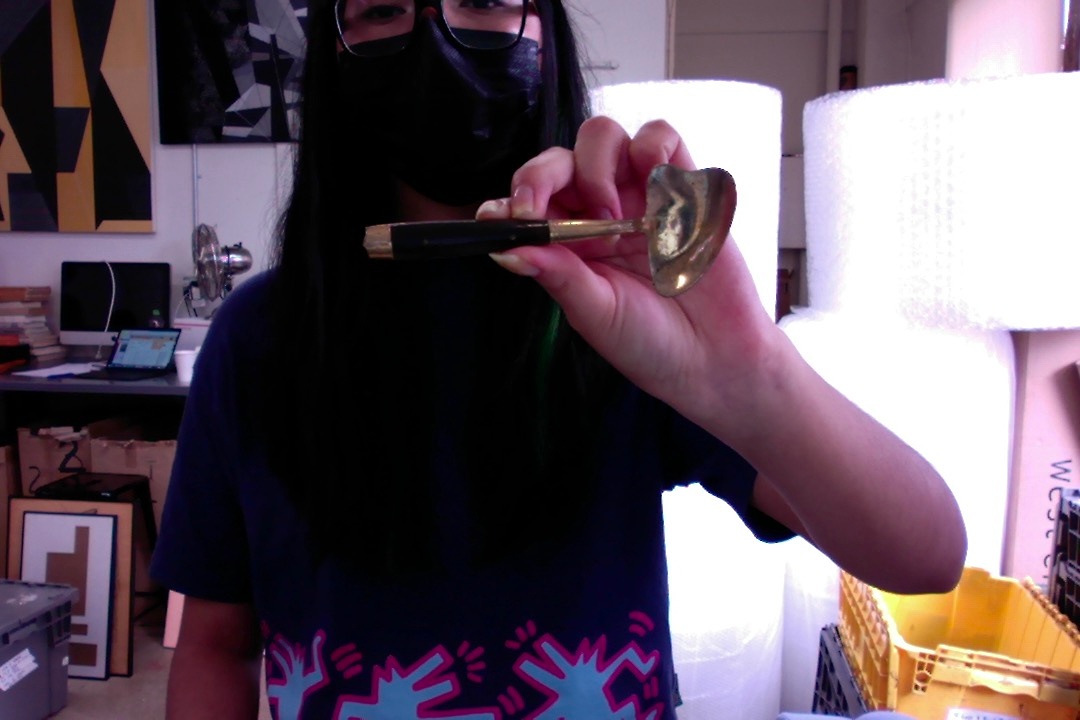 Sideways Heart-Shaped Bowl, Brown Wood Handle With 2 Rivets