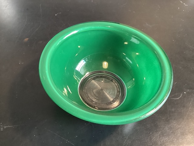 Green Glass Pyrex Bowl with Clear Bottom (1 of 3; smallest)