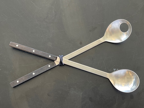 Serving Set w. Dark Wood Handle 2 Spoons 1 w. Hole