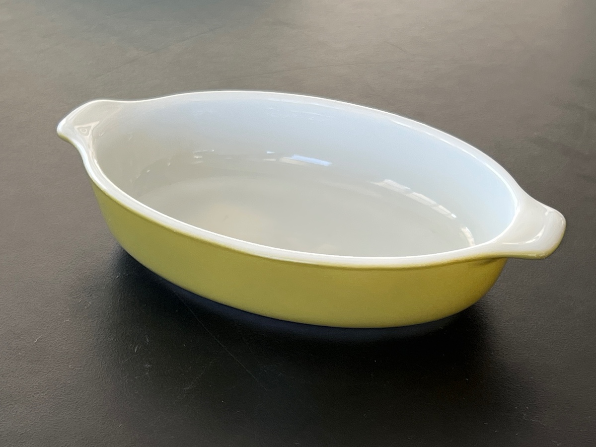 Oval Baking Dish w Two Small Handles White Interior