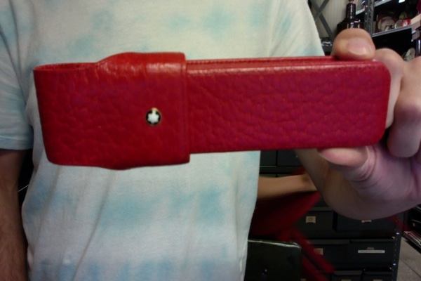 Leather lid attached with two pens inside
