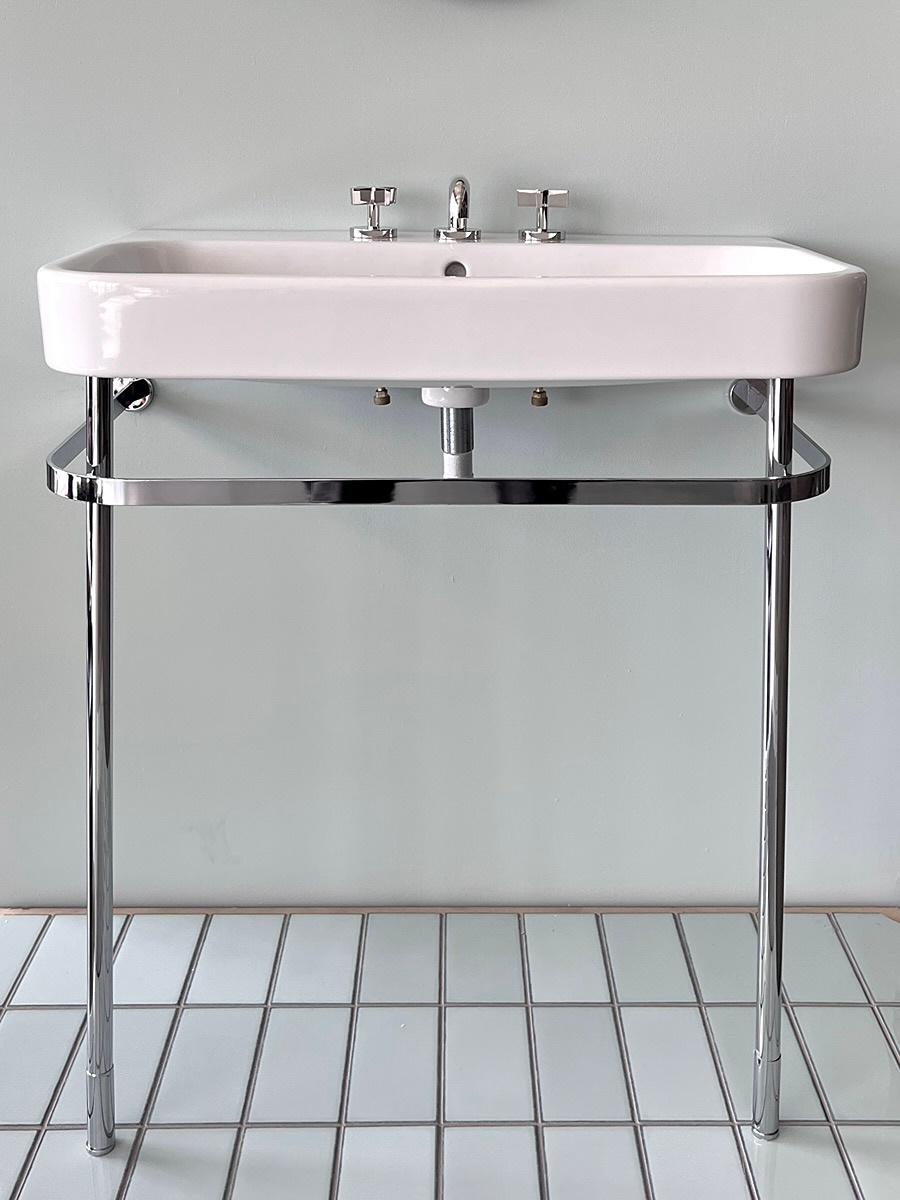 White Porcelain Bathroom Sink Console w Frame