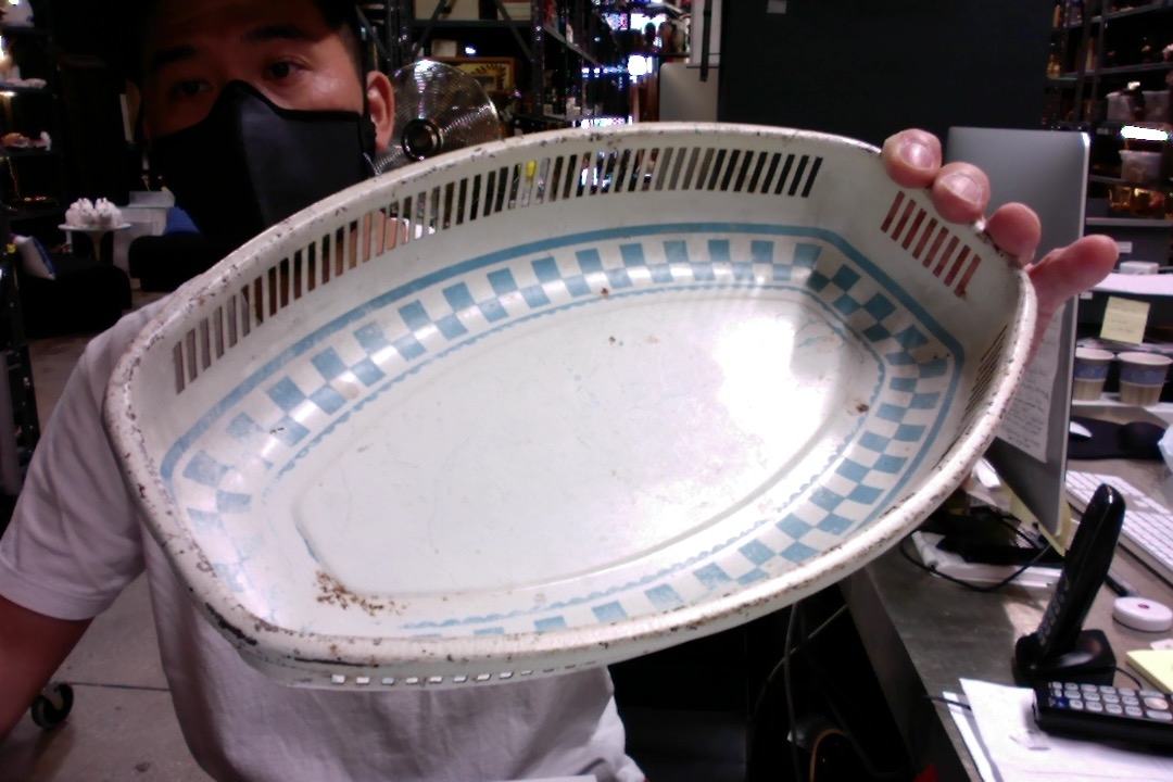 Blunted Oval Shape, Blue Checked Design Inside, Grated Edges
